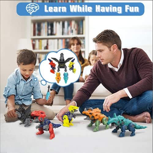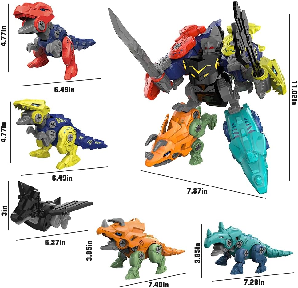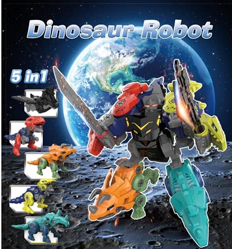 Kids Dinosaur Toys for 3 4 5 6 7 8 Year Old Boys Gifts, 5 in 1 Dinosaur Building Toys Set, DIY Take Apart Transform into Robot Toys for Birthday Christmas