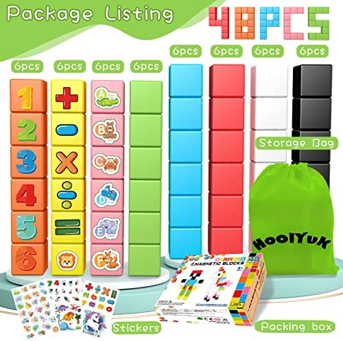 Magnetic Blocks for Toddler Toys, 48Pcs Magnetic Blocks Toddler Toys Learning Resource Sensory Magnetic Building Blocks, Large Size 1.2inch Magnet Toys for 3 4 5 6 Year Old Boys and Girls